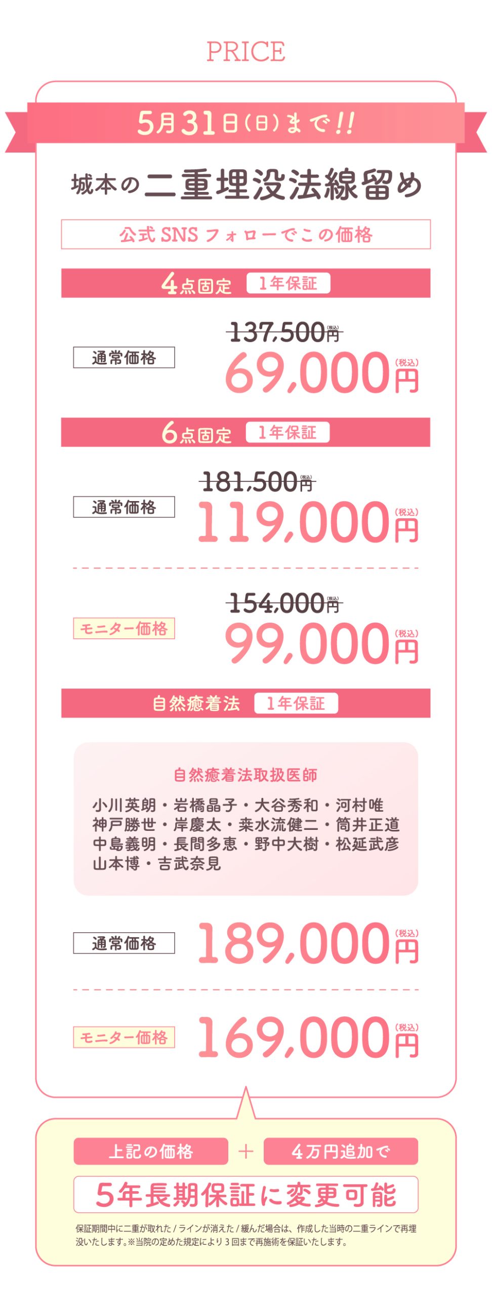 費用二重埋没法線留め 98,000円(税込)~203,500円(税込)