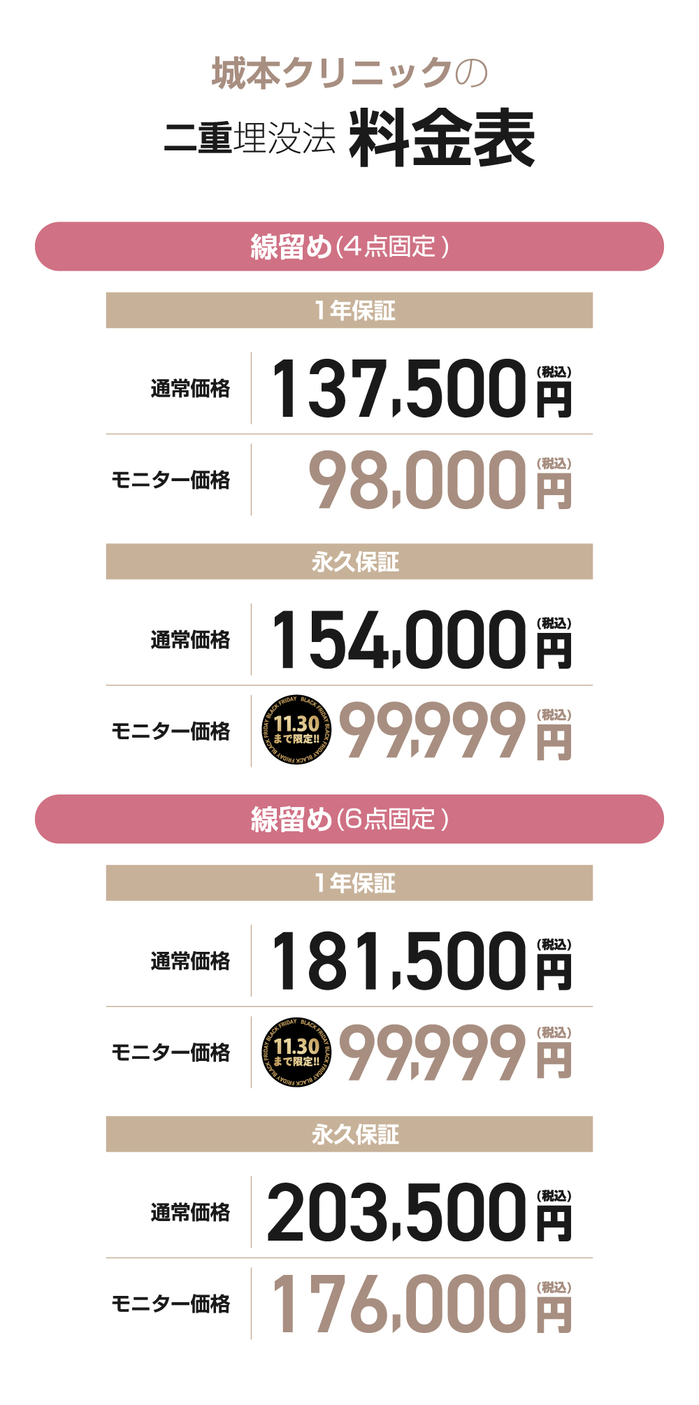 城本クリニックの二重まぶた施術は選べる「1年保証」と「永久保証」の2種類の保証がございます。