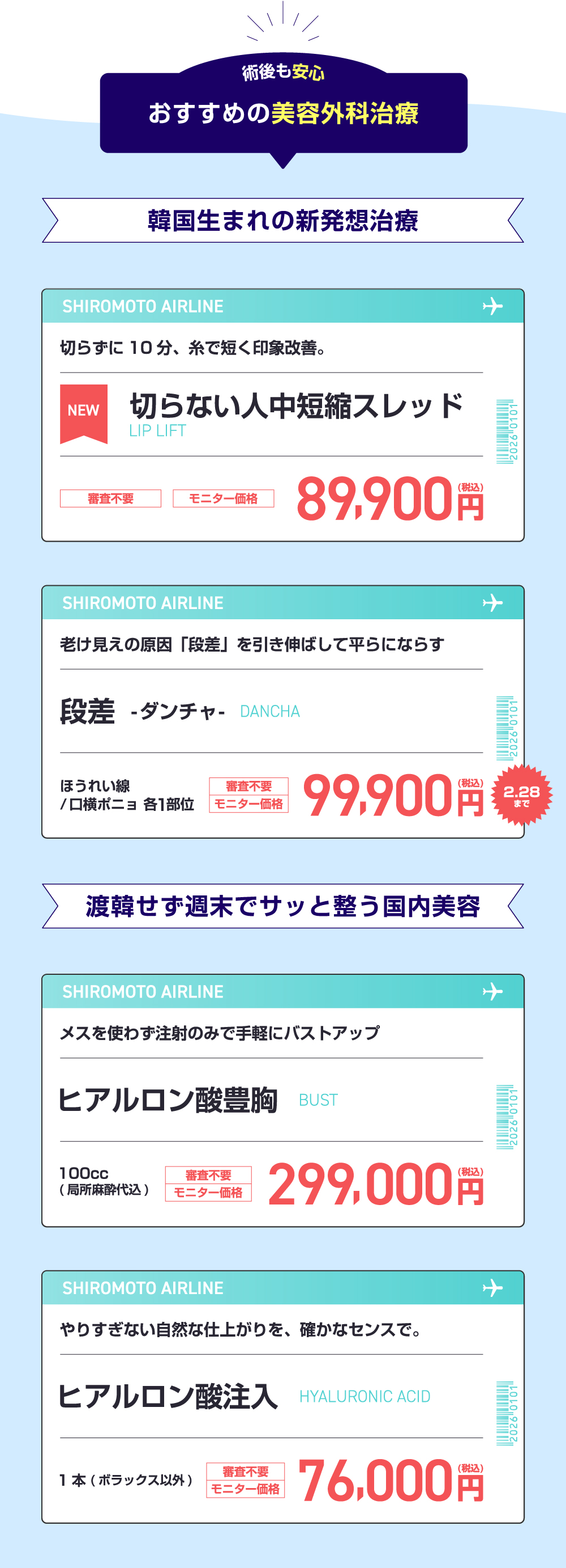 美容外科治療は、医師やクリニックによって方針や提案内容が異なることも多いため、当院ではセカンドオピニオンのご活用を推奨しております。